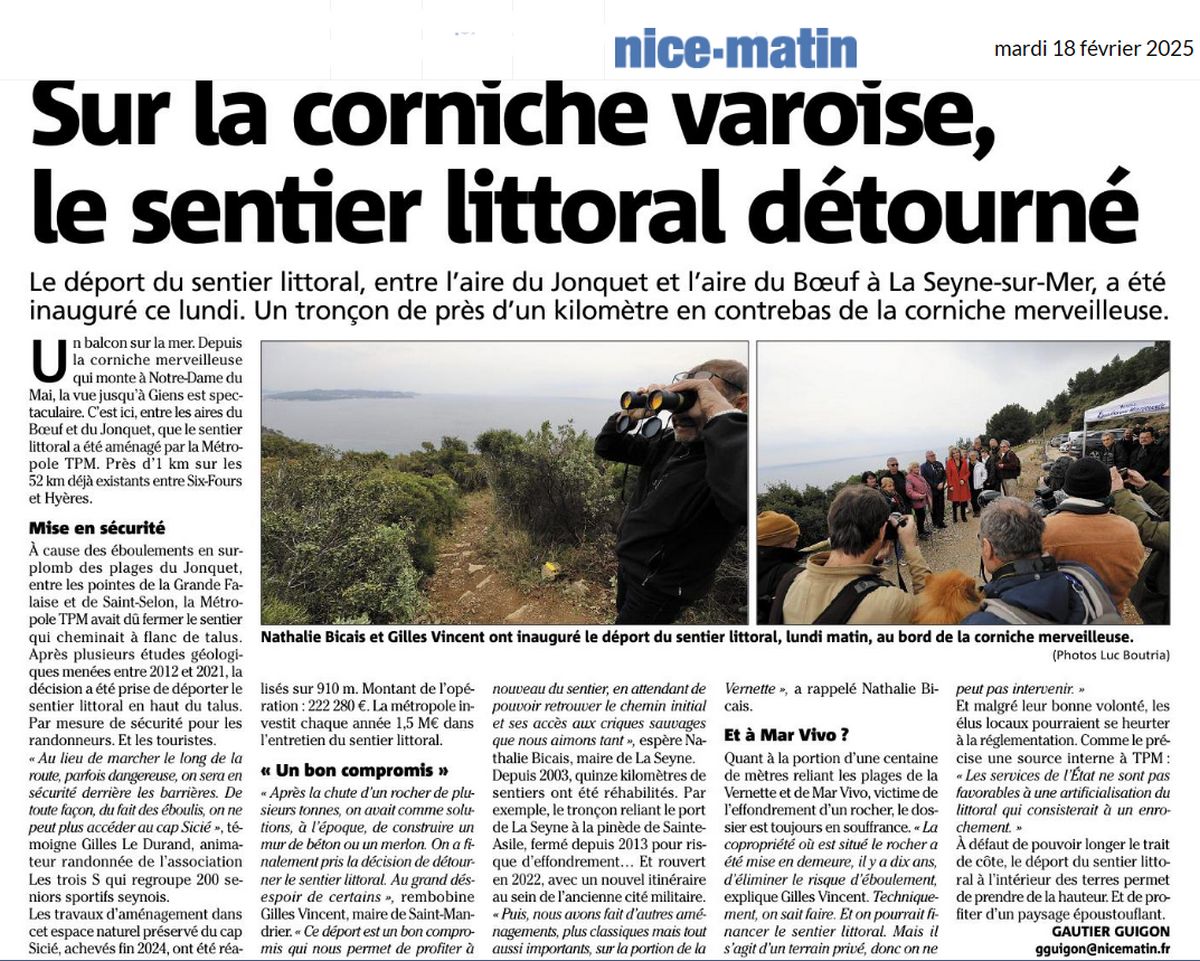 Corniche Merveilleuse : Détournement sentier du littoral Partager : Cliquez pour partager sur Facebook(ouvre dans une nouvelle fenêtre) Facebook J’aime chargement…