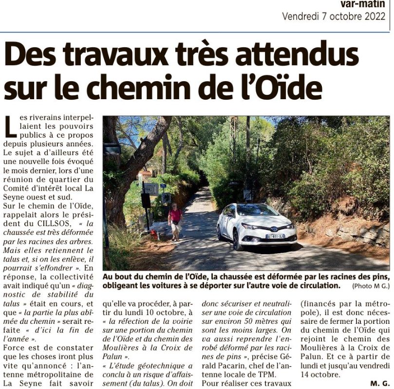 Travaux Chemin de l’Oïde Partager : Cliquez pour partager sur Facebook(ouvre dans une nouvelle fenêtre) Facebook J’aime chargement…