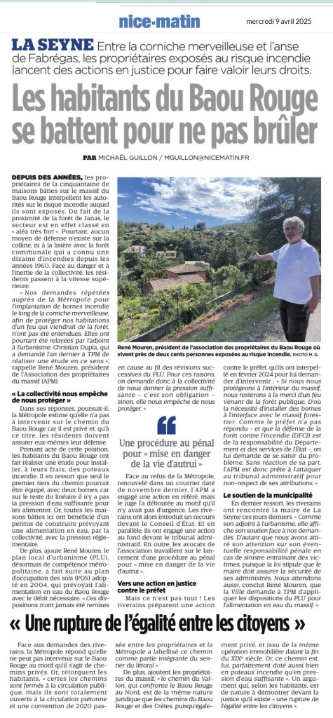 Risque incendie des propriétés du Baou Rouge Partager : Cliquez pour partager sur Facebook(ouvre dans une nouvelle fenêtre) Facebook J’aime chargement…